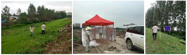 2016年7月3日,綠茵董事長(圖2)親臨江岸區(qū)朱家河堤與工人一起手把手搭建值班棚,并一起參與巡堤工作(圖3)。綠茵積極響應(yīng)街道安排,一天24小時安排人手輪流守堤、巡堤、護(hù)堤。圖1為綠茵員工杵棒在堤上來回走動,查看是否出現(xiàn)滲水潰口,并及時向上級匯報實時情況。